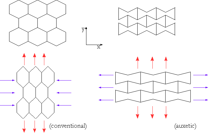 One of the first images I produced, as a PhD student in the 1990s, to explain auxetic behaviour.